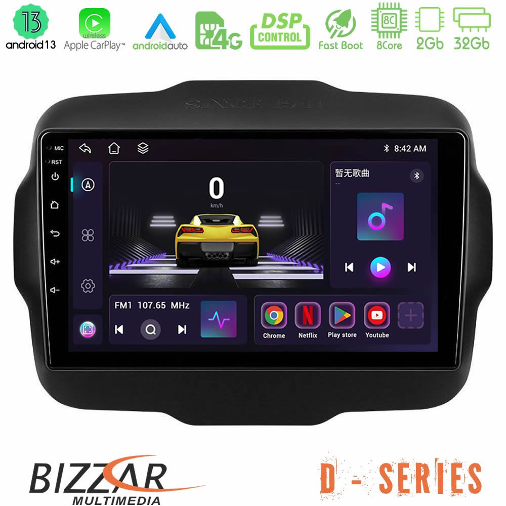 Bizzar D Series Jeep Renegade 2015-2019 8core Android13 2+32GB Navigation Multimedia Tablet 9"
